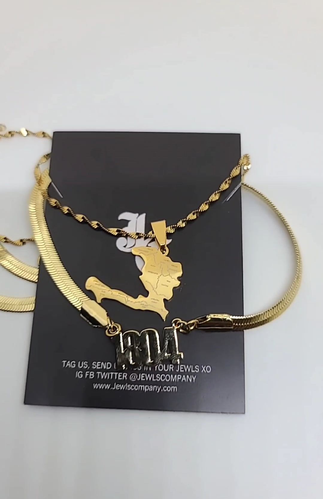 1804 Necklace is tarnish resistant Haitian flag in gold finish. You can also make this a set with our Revolt necklace. Ships within 3-5 business days.