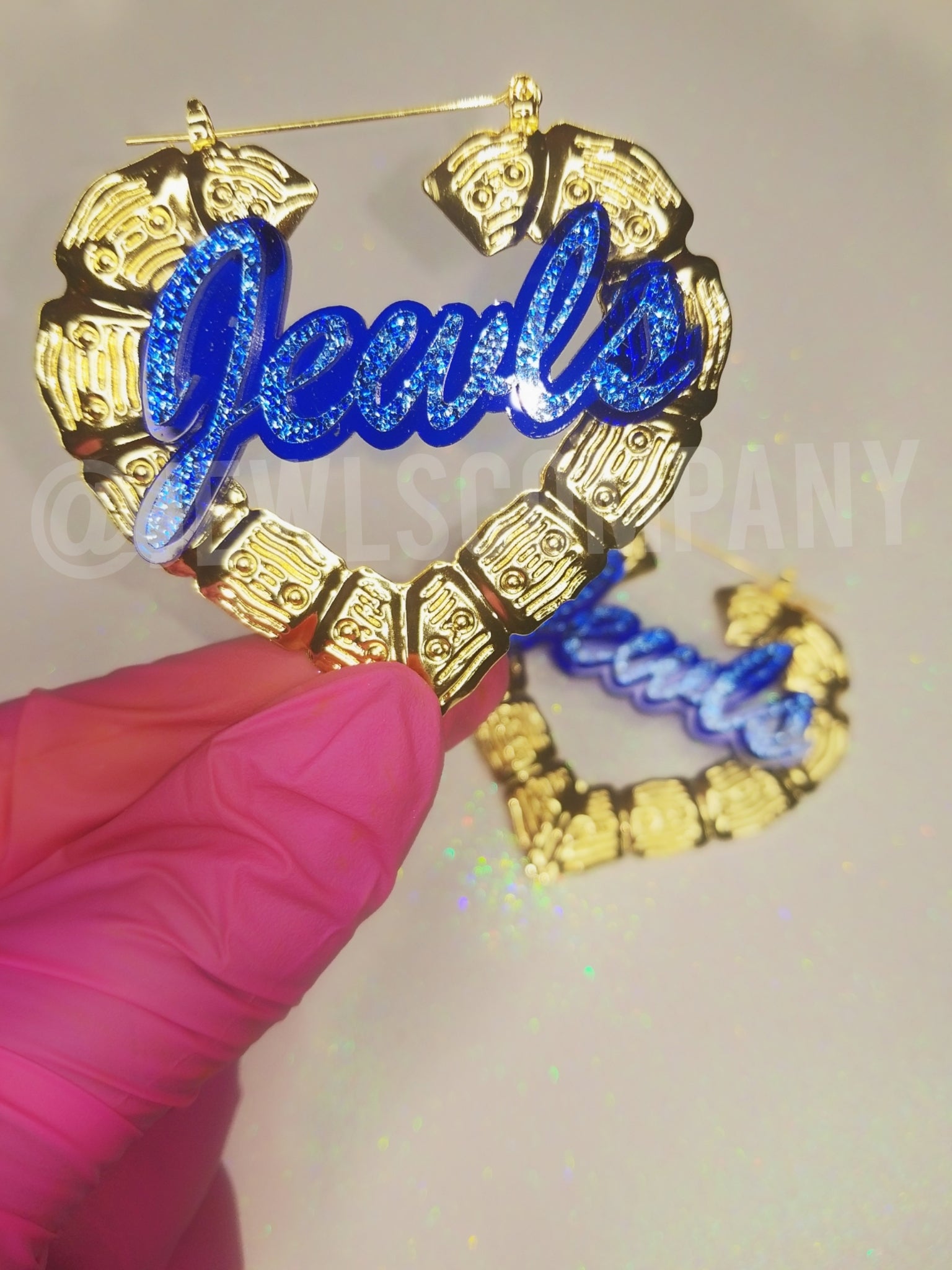 Candy Crush Blue bamboo earrings. Heart shaped comes in sizes 2.5 inches and 3.3 inches. Customize to your name.