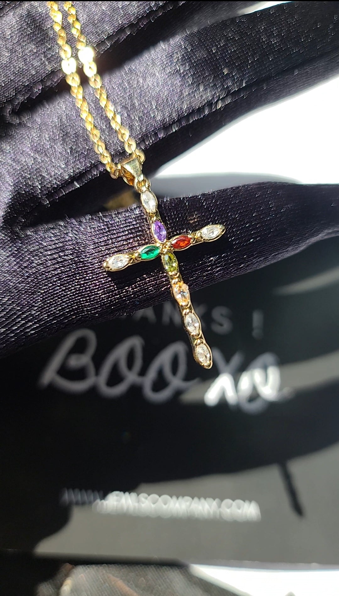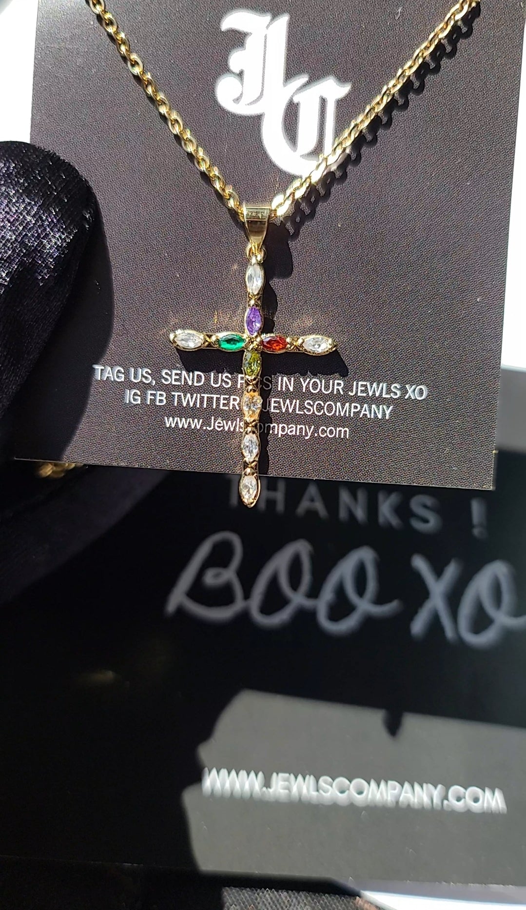 Couleurs De La Croix, our multi-colored stone faceted cross necklace is made of beautiful gems and non-tarnish materials. Uniquely made.