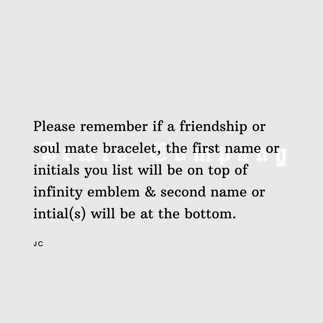 Infinity Love Bracelet in non-tarnish materials you can customize bracelet from intial(s) & or up to 8 letters. This can be your intitial(s) or name or you & your soul mate or bestie's initials, name.