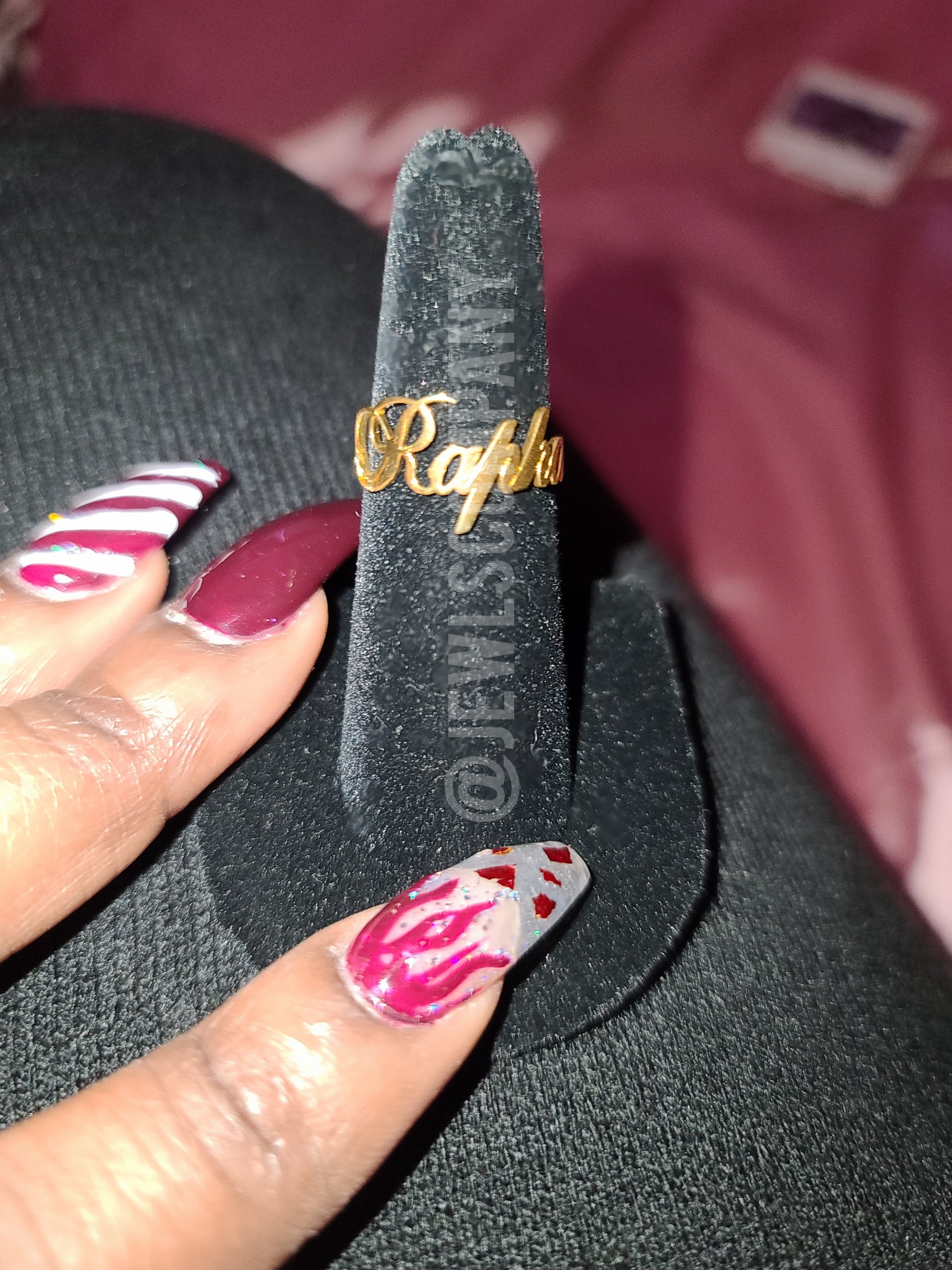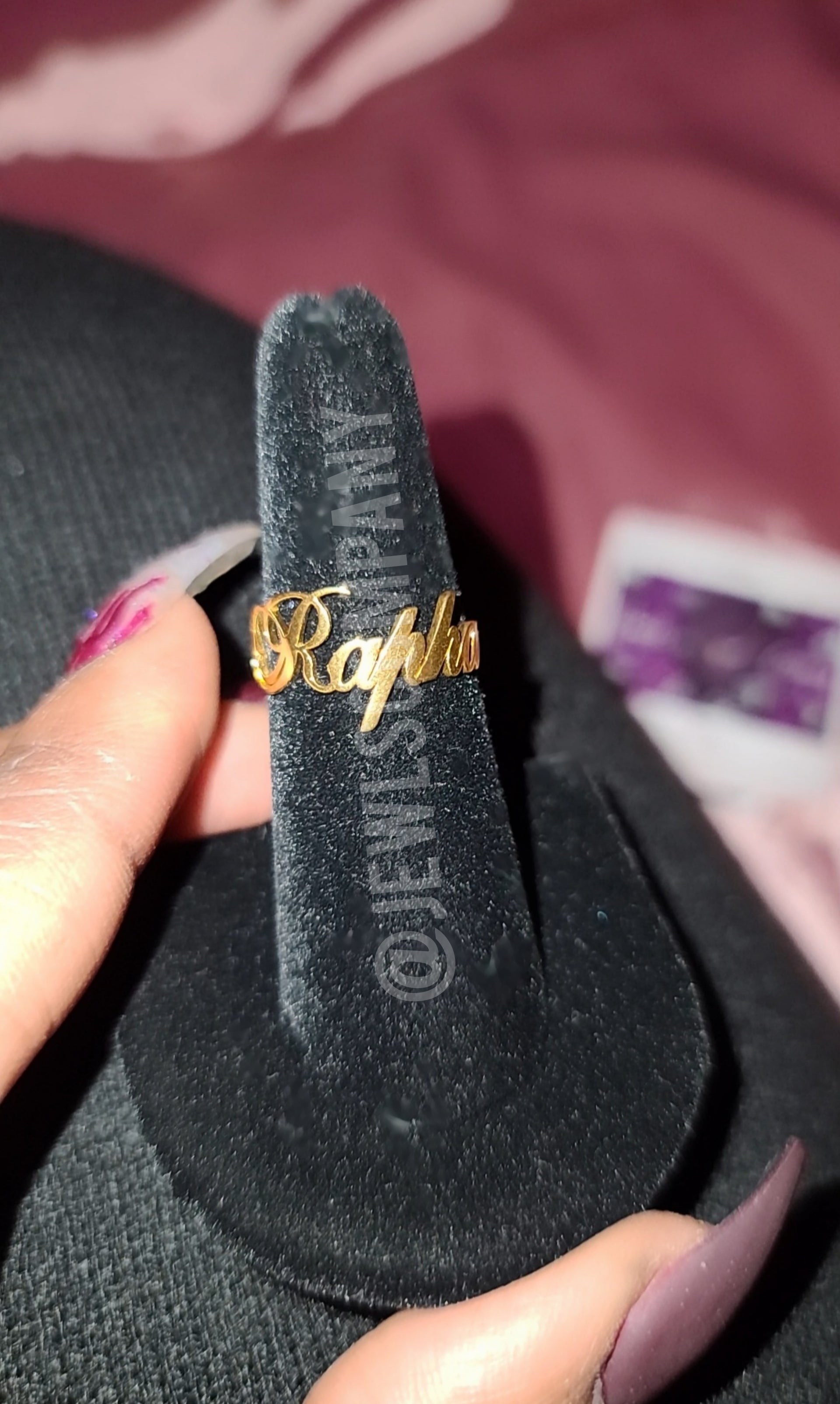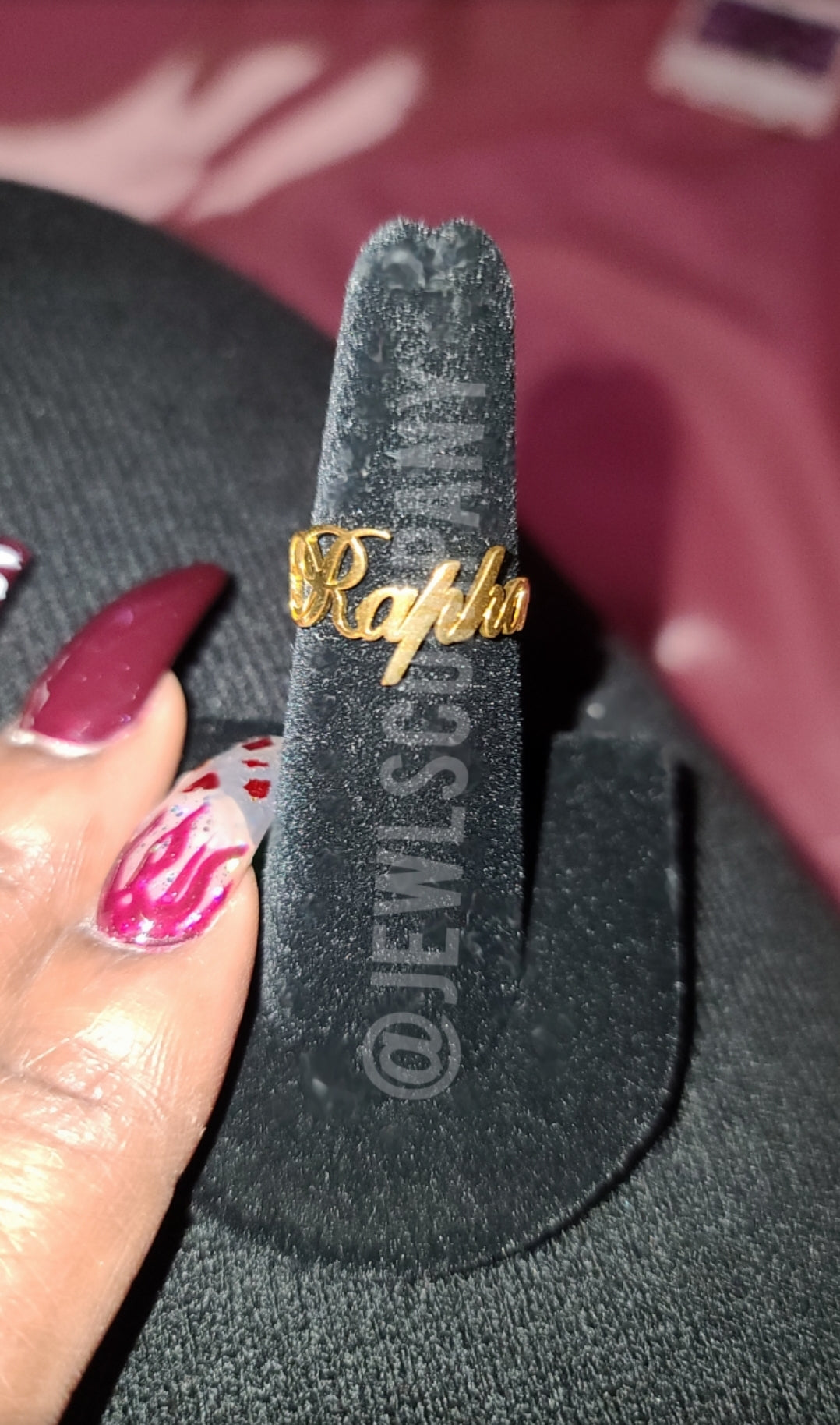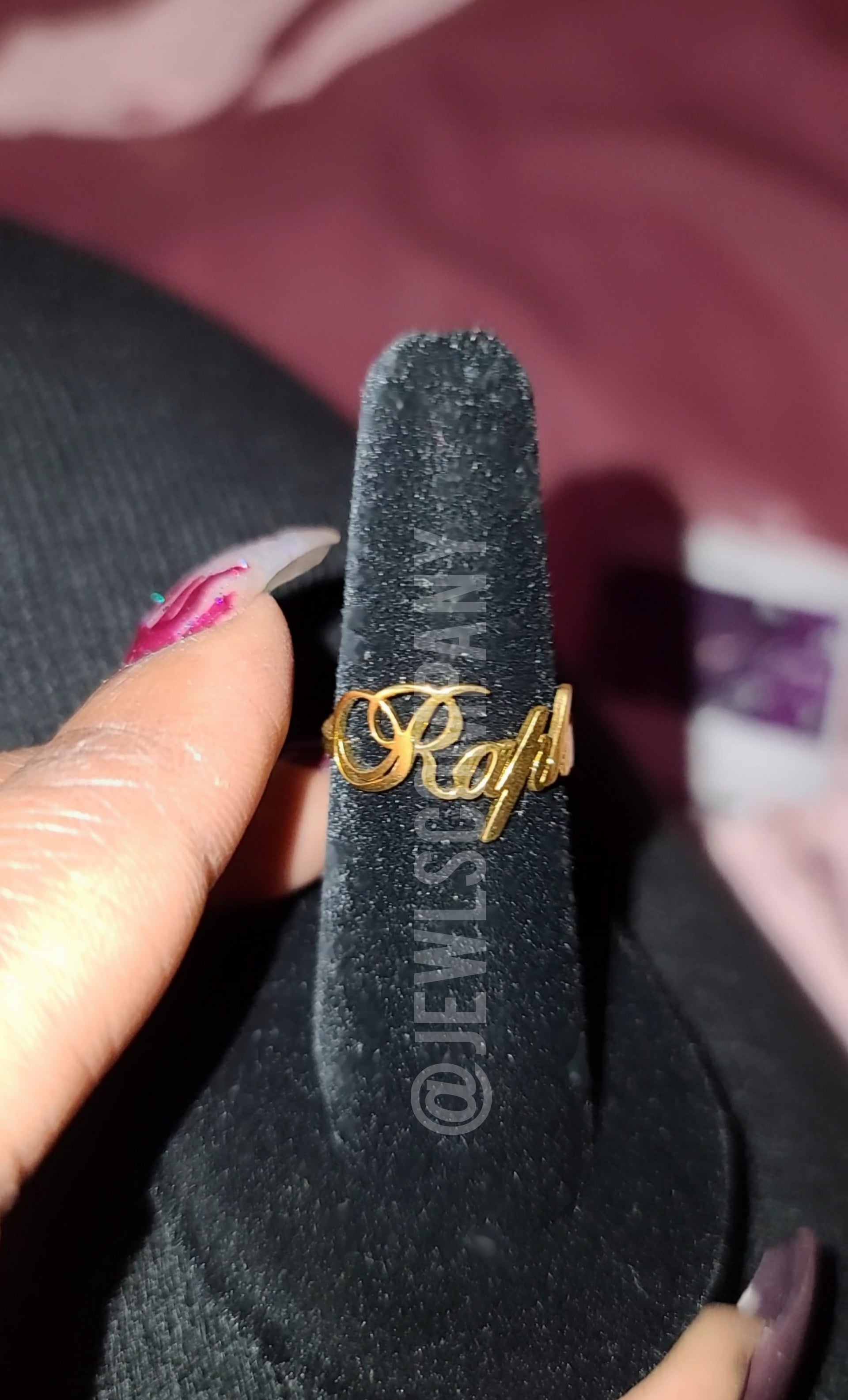 Customize your "It's My Name Ring" up to 8 letters. Non tarnish metals, comes in gold & platinum finishes.
