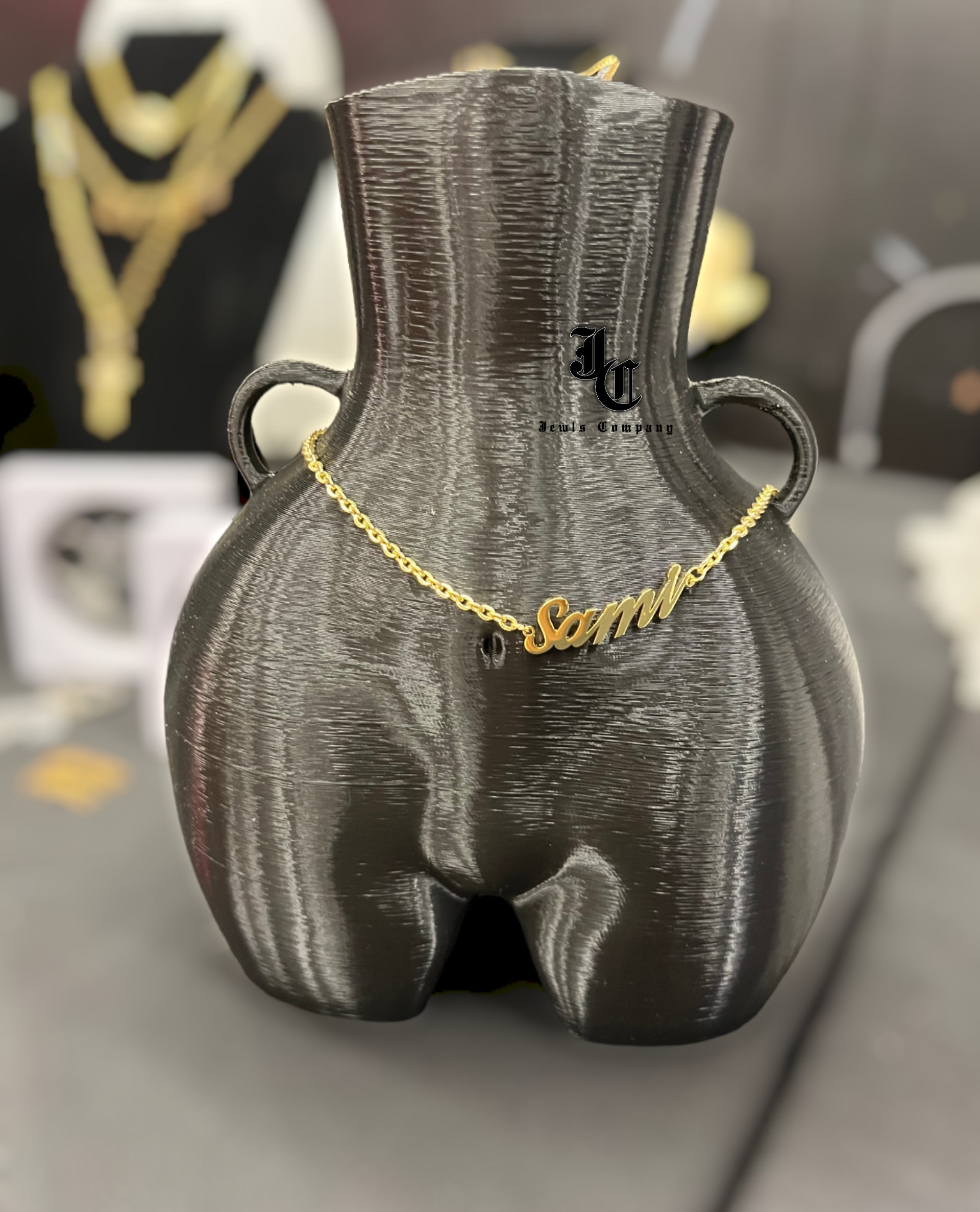 Customize your waist chain to your name, nicknames in alphabetic and or in numeric. We have three finishes. Gold, silver or Rose Gold. Non-tarnish materials.