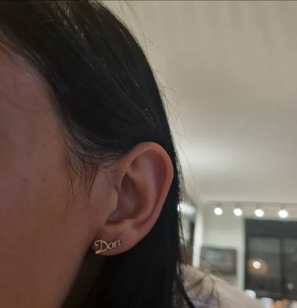 Our customized Name Me earrings are of non-tarnish materials. Made to be personalized of your name, nicknames & as a personalized gift.