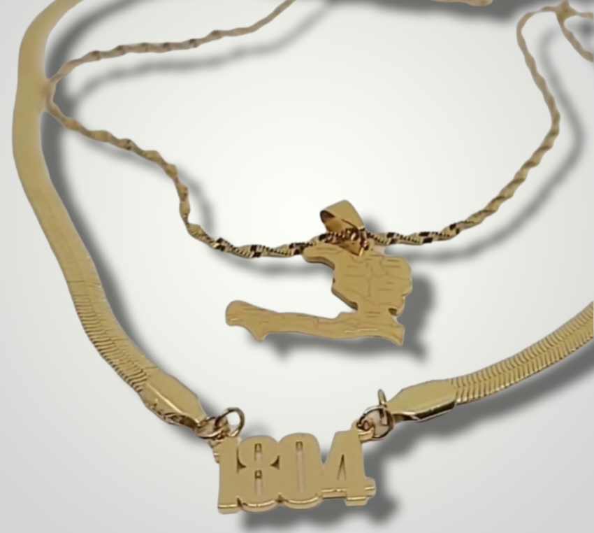 Revolt Necklace is tarnish resistant Haitian flag in gold finish. You can also make this a set with our 1804 necklace. Ships within 3-5 business days.