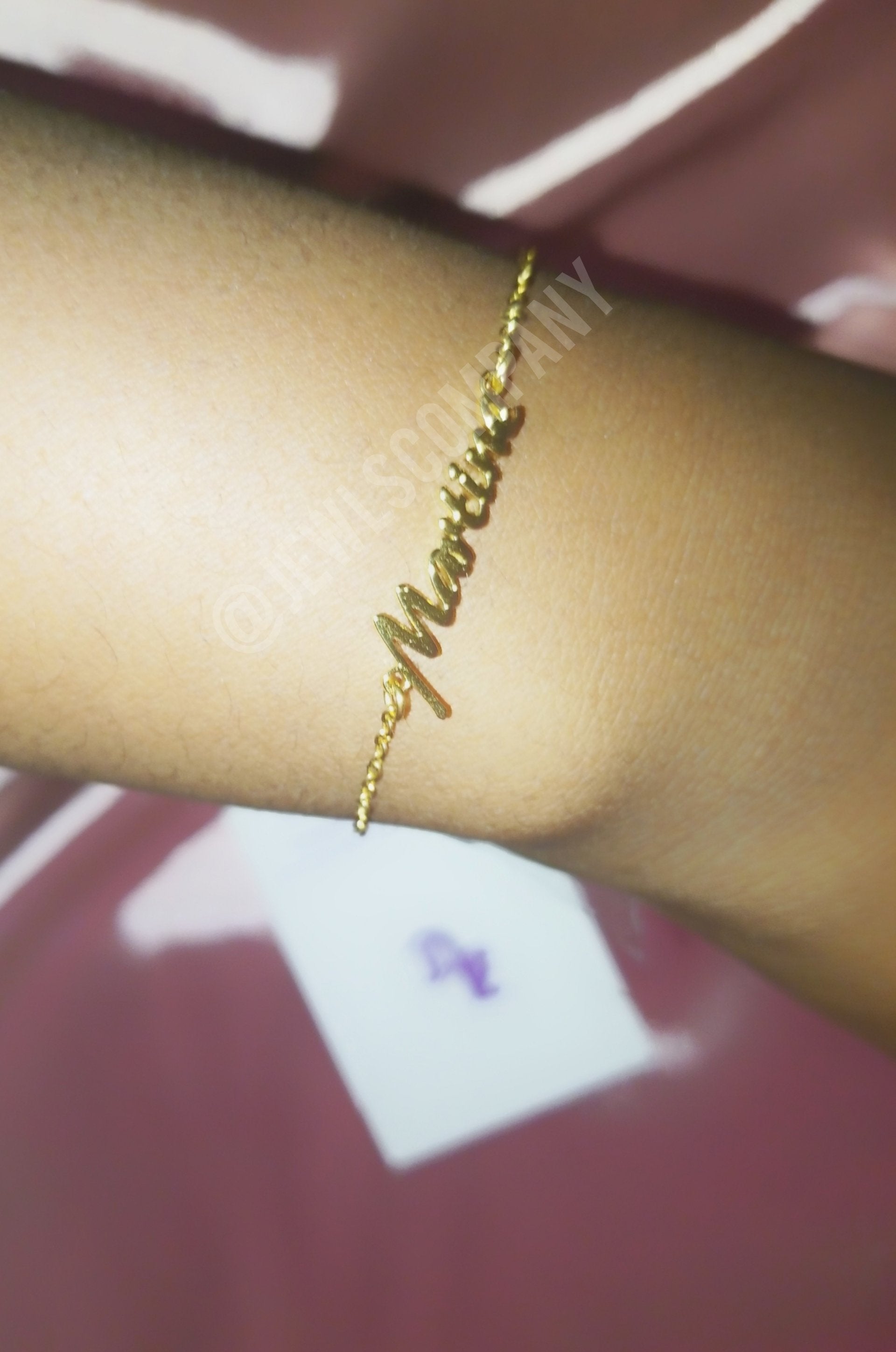 Say My Name bracelet customized to your name. Tarnish free. Three finishes available.