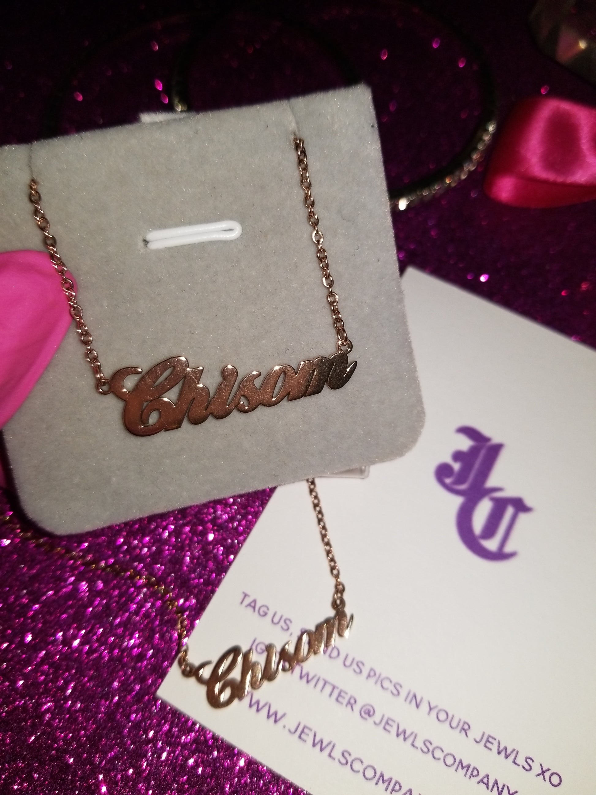 Customize your necklace with your name. Comes in Gold, Platinum and Rose gold finish. Up to 9 letters and up to 9 fonts available. (Necklace & anklet in this image). Tarnish free.
